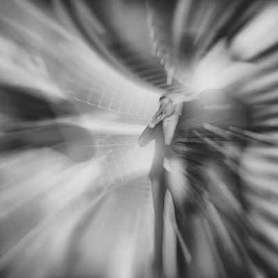Scène : (Dachel et Mani, tout de blanc vêtu, se cherchent au milieu des drapages blancs.)